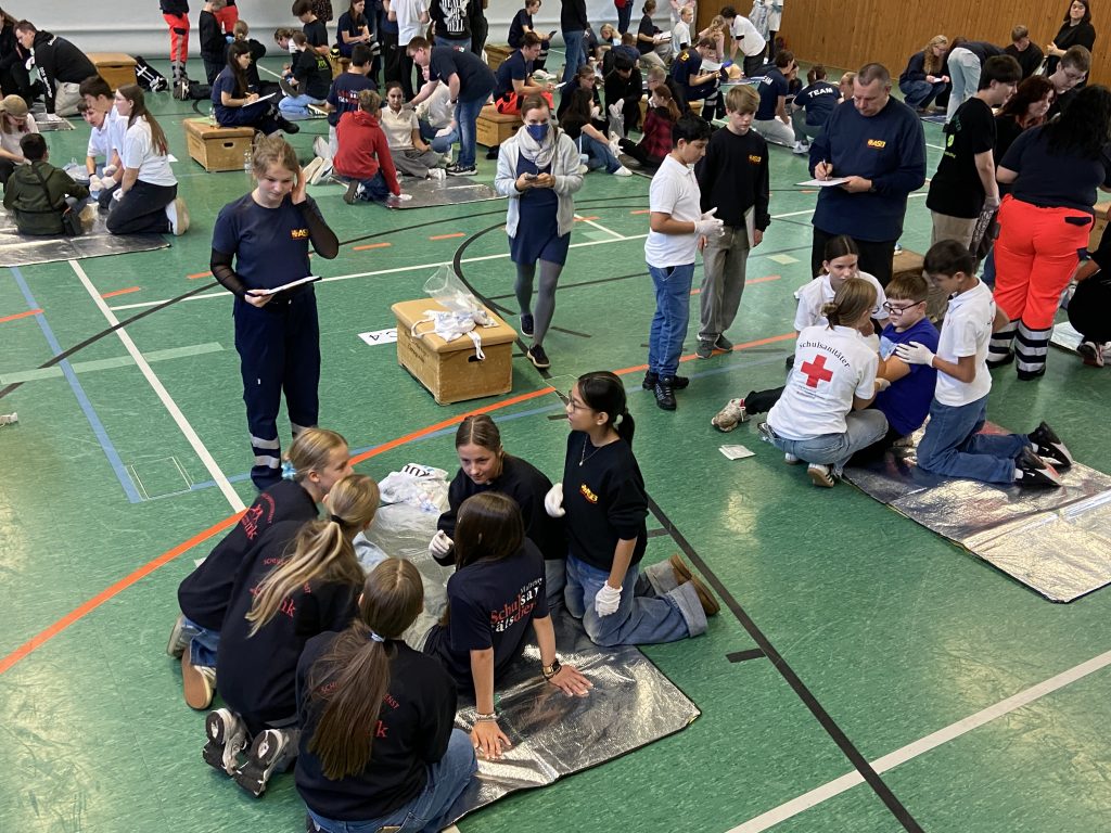 Am 18.9. fand an der IGS Sally Perel der diesjährige Schulsanitätsdienst-Wettbewerb statt. Insgesamt nahmen 25 Schulen aus der Region teil, die mit insgesamt 30 Sanitäter-Teams antraten, um ihr Können unter Beweis zu stellen.